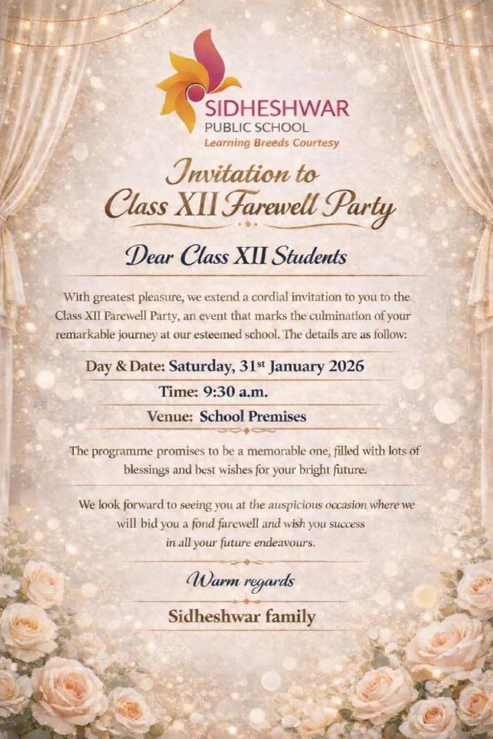 Please find the attached Invitation to class- XII Farewell Party.