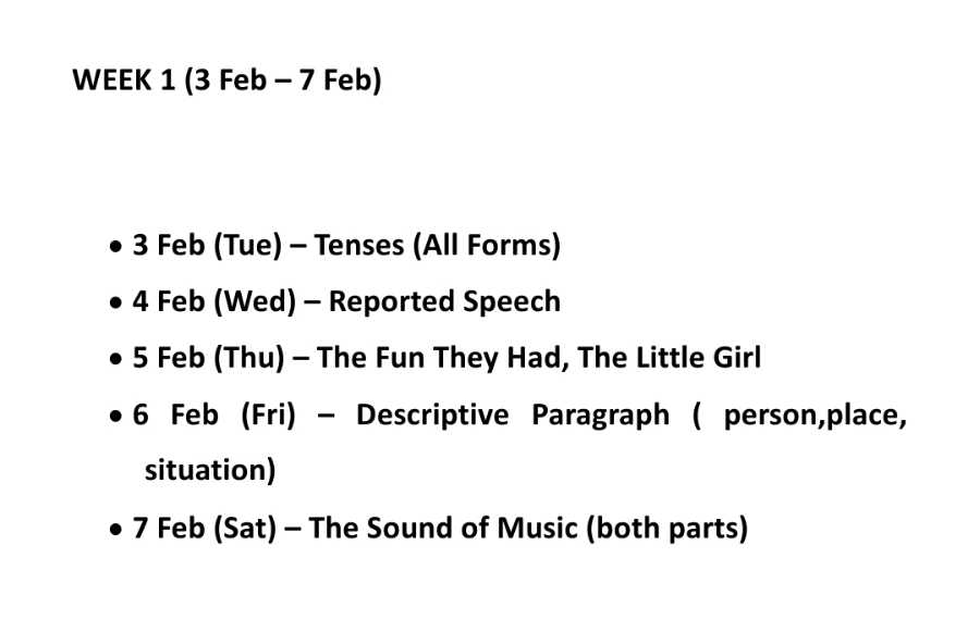 Kindly come prepared according to the given Revision Schedule for English.