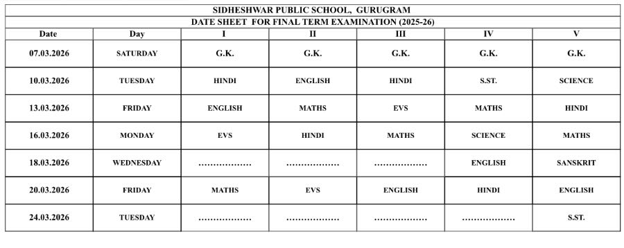 Kindly find attached the date-sheets of final term exam. The hard copies of the datesheet will be handed over to the students shortly.